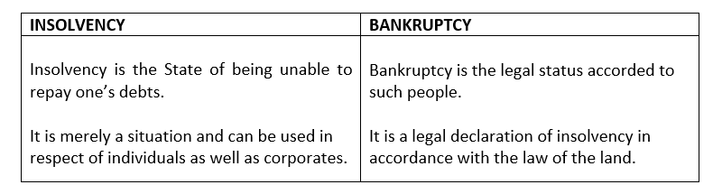 WHAT IS INSOLVENCY? HOW IS IT DIFFERENT FROM BANKRUPTCY?