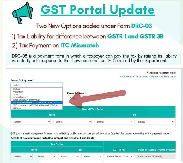 These options have been enabled for taxpayers to make payment in relation to the differences arising on account of specific mismatch reasons as mentioned above.